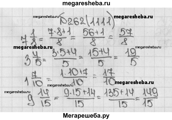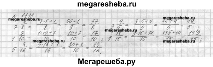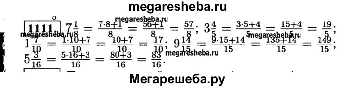 1111. Запишите в виде неправильной дроби: 7*1/8; 3*4/5; 1*7/10; 9*14/15; 5*3/16