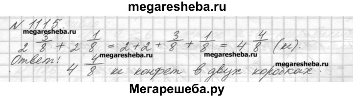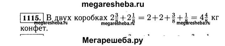 1115. В одной коробке 2*3/8 кг конфет, а в другой коробке 2 2*1/8 кг. Сколько килограммов конфет в этих двух коробках?