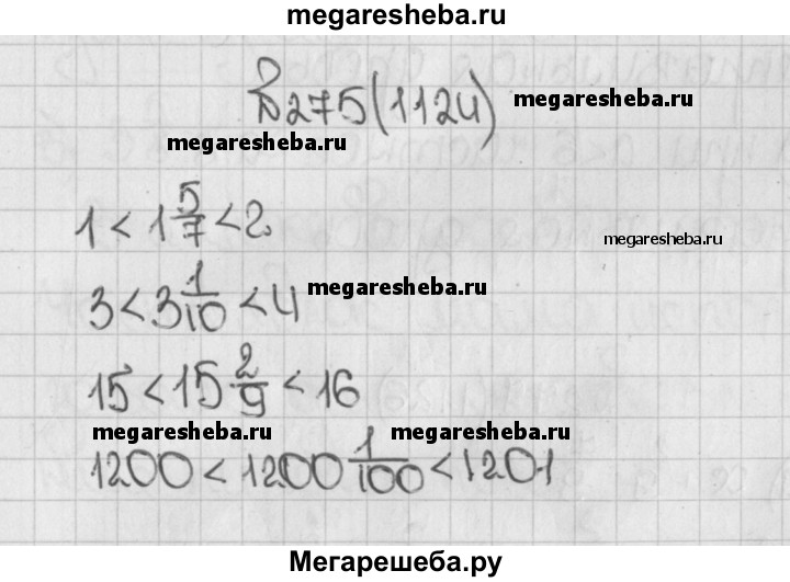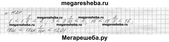 1124. Между какими натуральными числами на координатном луче расположены смешанные числа: 1*5/7; 3*1/10; 15*2/9; 1200*1/100?