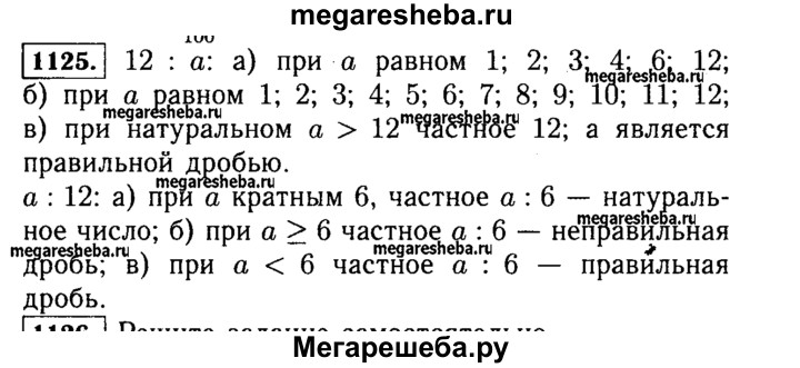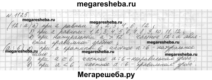 1125. При каких значениях а частное 12 : а будет: а) натуральным числом; б) неправильной дробью; в) правильной дробью? Ответьте на те же вопросы для частного а : 6.