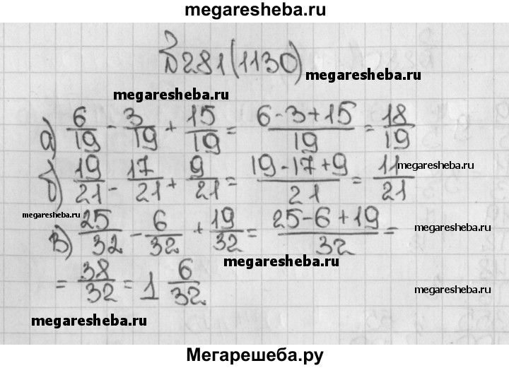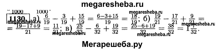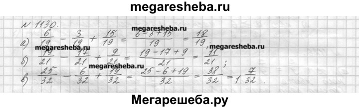 1130.. Выполните действия: а)6/19 – 3/19 +15-19 б)19/21 – 17/21 + 9/21; в) 25/32- 6/32 + 19/32.