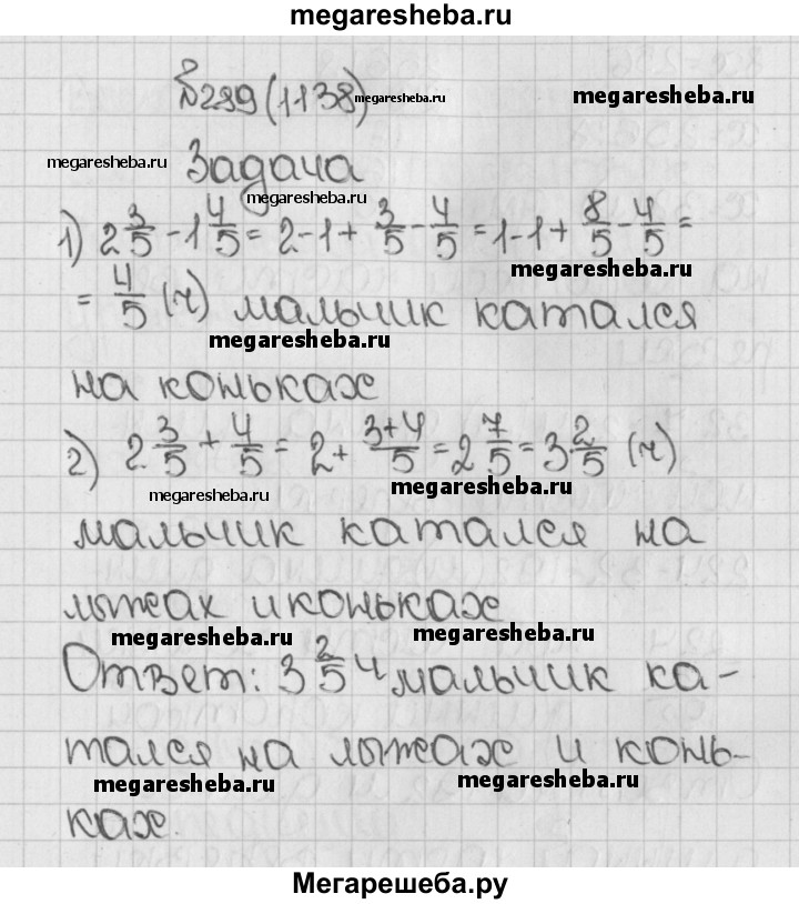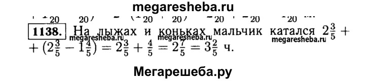 1138. В один из дней зимних каникул мальчик 2*3/5 ч катался на лыжах, а на коньках на 1*4/5 ч меньше. Сколько всего времени он катался на лыжах и коньках?