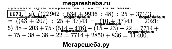 Подробный решебник (ГДЗ) по Математике за 5 (пятый) класс - готовый ответ глава 2 § 6 тема 30 - 1171. Авторы учебника: Виленкин, Жохов, Чесноков, Шварцбурд. Издательство: Мнемозина 2017-2019.