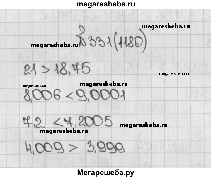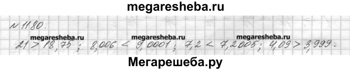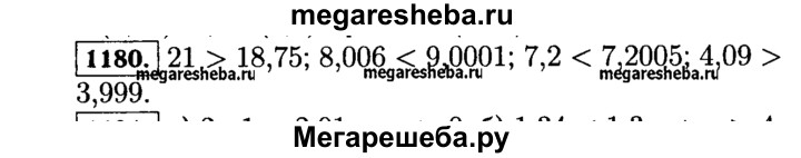 1180. Замените звёздочки знаками < или > так, чтобы получилось верное неравенство: 21 * 18,75; 8,006 * 9,0001; 7,2 * 7,2005; 4,009 * 3,999.