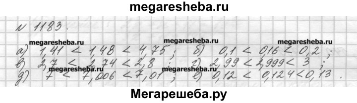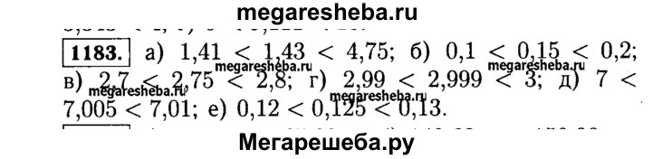 1183. Найдите какое-нибудь значение х, при котором верно неравенство: а) 1,41 < x: < 4,75; г) 2,99 < x < 3; б) ОД < х < 0,2; д) 7 < x < 7,01; в) 2,7 < х < 2,8; е) 0,12 < х < 0,13.