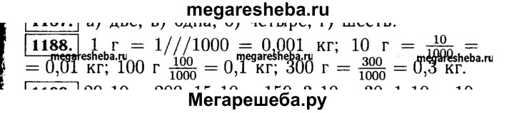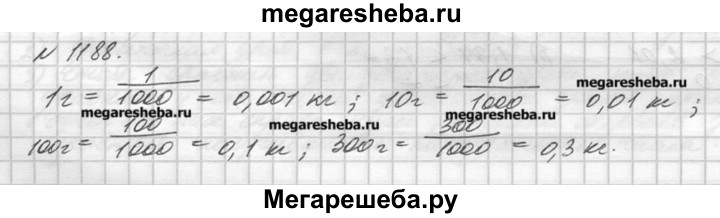 1188. Какую часть килограмма составляют: 1 г; 10 г; 100 г; 300 г?