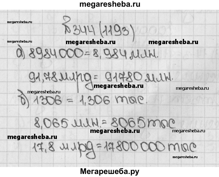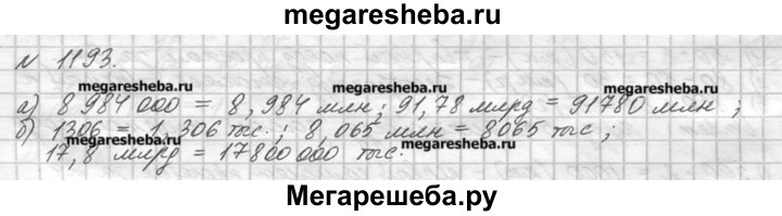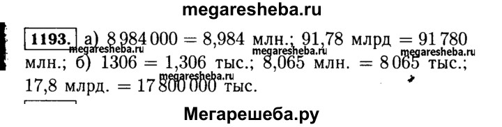 1193. Выразите: а) в миллионах: 8 984 000; 91,78 млрд; б) в тысячах: 1306; 8,065 млн; 17,8 млрд.