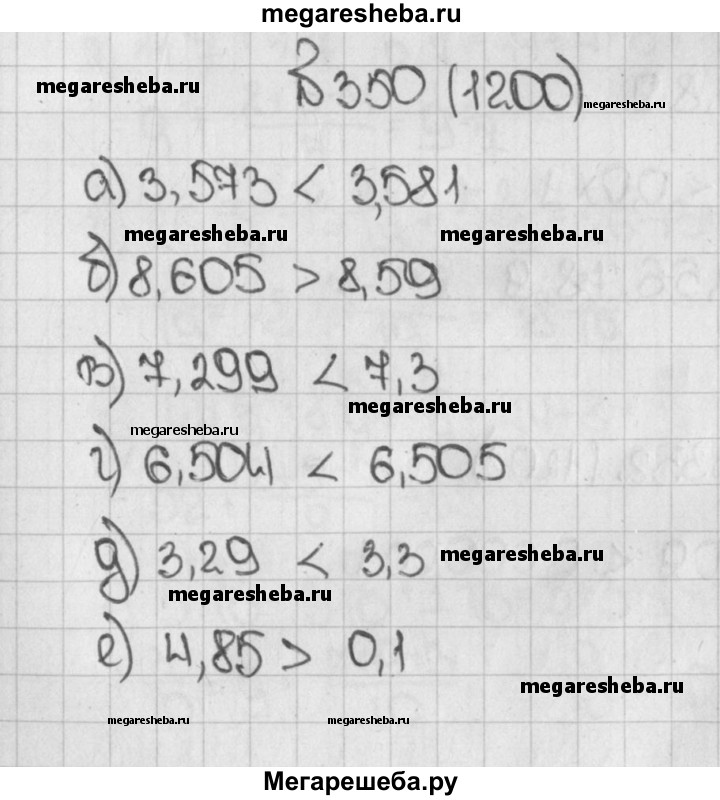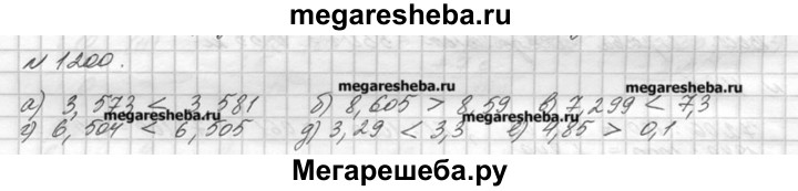 1200. Сравните числа: а) 3,573 и 3,581; в) 7,299 и 7,3; д) 3,29 и 3,3; б) 8,605 и 8,59; г) 6,504 и 6,505; е) 4,85 и 0,1.