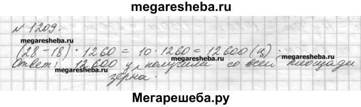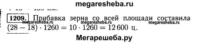 1209. Поле в 1260 га засеяли озимой пшеницей вместо яровой и собрали по 28 ц зерна с гектара. Урожайность яровой пшеницы была 18 ц с гектара. Какую прибавку зерна получили со всей площади?