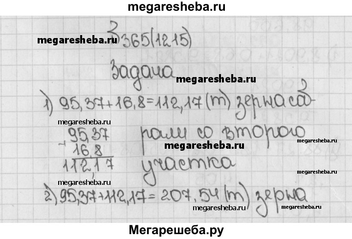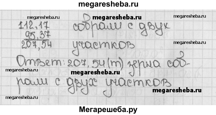 1215. С одного участка собрали 95,37 т зерна, а с другого — на 16,8 т больше. Сколько тонн зерна собрали с двух участков?