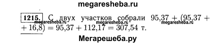 Подробный решебник (ГДЗ) по Математике за 5 (пятый) класс - готовый ответ глава 2 § 6 тема 32 - 1215. Авторы учебника: Виленкин, Жохов, Чесноков, Шварцбурд. Издательство: Мнемозина 2017-2019.