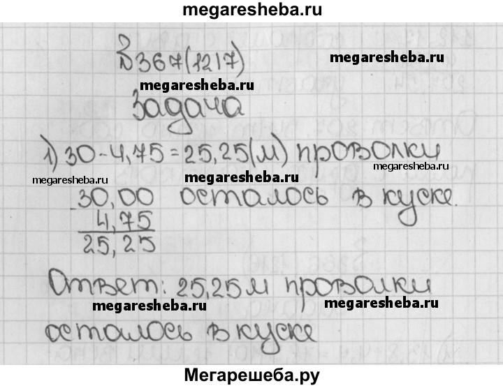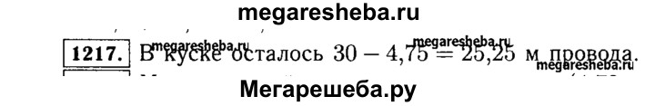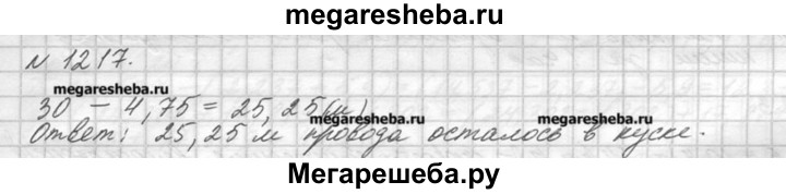 1217. От куска провода длиной 30 м отрезали 4,75 м. Сколько метров провода осталось в куске?