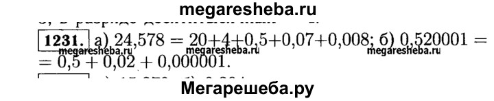1231. Разложите по разрядам число: а) 24,578; б) 0,520001.