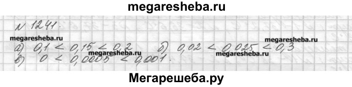 1241. Назовите какое-либо число, расположенное на координатном луче: а) между числами 0,1 и 0,2; б) между 0,02 и 0,03; в) левее 0,001, но правее 0.