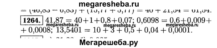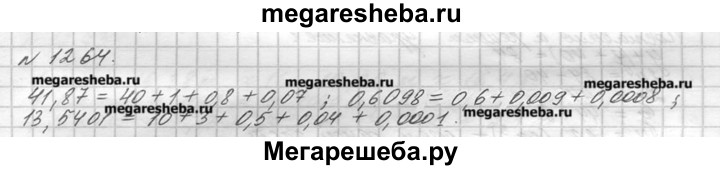1264. Разложите по разрядам числа: 41,87; 0,6098; 13,5401.