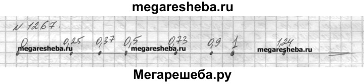 1267. Отметьте на координатном луче числа: 0,25; 0,5; 0,9; 0,37; 0,73; 1,24. За единичный отрезок примите 1 дм.