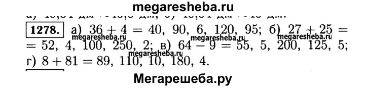 Подробный решебник (ГДЗ) по Математике за 5 (пятый) класс - готовый ответ глава 2 § 6 тема 33 - 1278. Авторы учебника: Виленкин, Жохов, Чесноков, Шварцбурд. Издательство: Мнемозина 2017-2019.