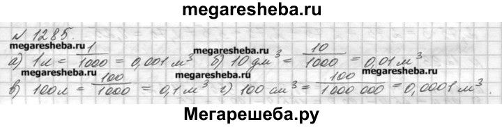 1285. Какую часть кубического метра составляет: а) 1 л; б) 10 дм3; в) 100 л; г) 100 см3?