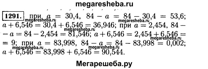 1291. Найдите значение выражения 84 - а и выражения а + 6,546, если а = 30,4; 2,454; 83,998.