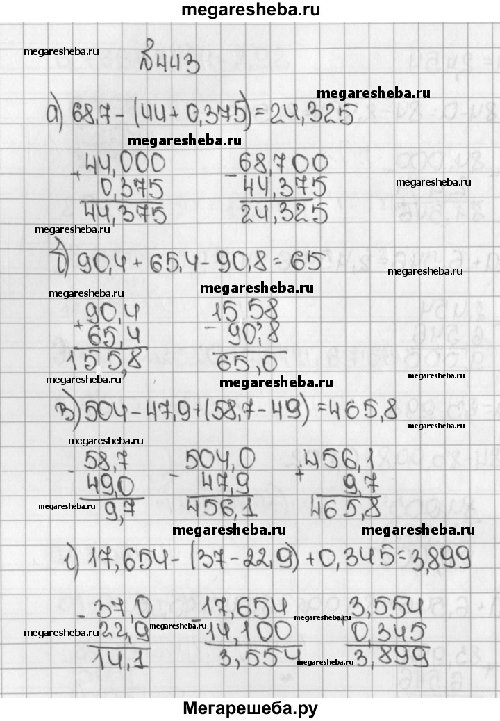 1293. Выполните действия: а)68,7 - (44 + 0,375); в) 504 - 47,9 + (58,7 - 49); б)90,4 + 65,4 - 90,8; г) 17,654 - (37 - 22,9) + 0,345.
