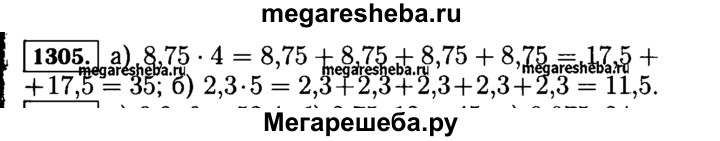 1305. Представьте произведение в виде суммы и найдите его значение: а) 8,75 * 4; б) 2,3 * 5.