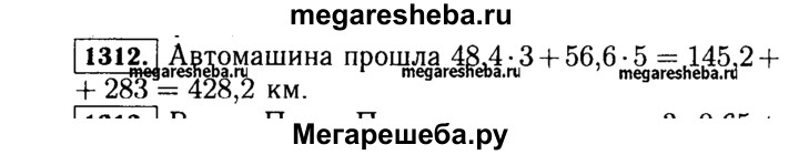 1312. Автомашина прошла 3 ч со скоростью 48,4 км/ч и 5 ч со скоростью 56,6 км/ч. Какой путь прошла автомашина за всё это время?