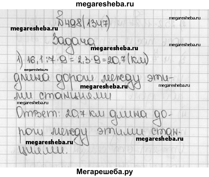 1347. Электрифицировано 16,1 км железной дороги, что составляет 7/9 всей дороги между двумя станциями. Какова длина дороги между этими станциями?