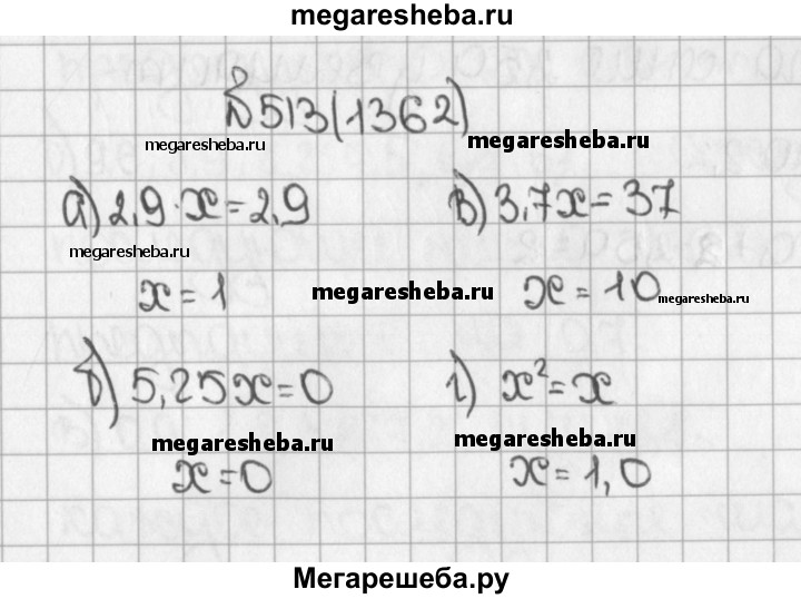 1362. Догадайтесь, каковы корни уравнения: а)2,9x = 2,9; в) 3,7x = 37; д) а3 = а; б)5,25x = 0; г) х2 = х; е) m2 = m3.