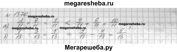 1370. Сравните: а)2/11 + 7/11 и 4/11 + 6/11 б)8/13 – 3/13 и 9/13 – 4/13