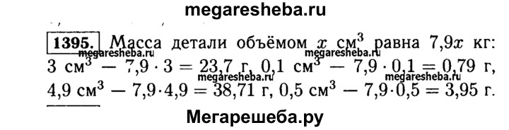 1395. Масса 1 см3 железа равна 7,9 г. Найдите массу железной детали объёмом 3 см3; 0,1 см3; 4,9 см3; 0,5 см3.