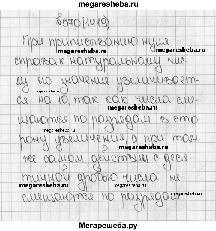 1419. Попробуйте объяснить, почему приписывание нуля справа к натуральному числу увеличивает его значение в 10 раз, а приписывание нуля к десятичной дроби не меняет её значения.