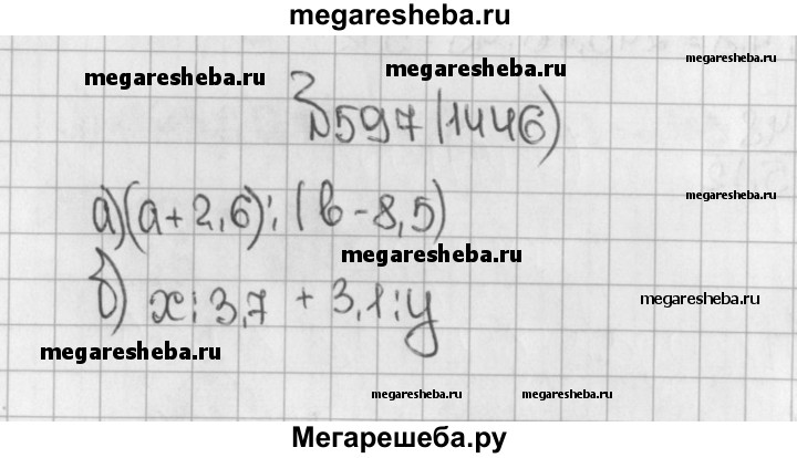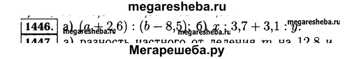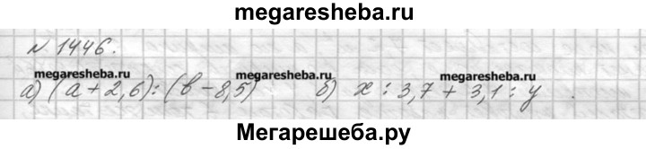 1446. Запишите выражения: а)частное от деления суммы а и 2,6 на разность b и 8,5; б)сумму частного х и 3,7 и частного 3,1 и у.