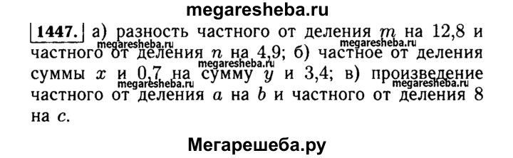 1447. Прочитайте выражение: а) m : 12,8 - n : 4,9; б) (х + 0,7) : (у + 3,4); в) (а : Ь) * (8 : с).