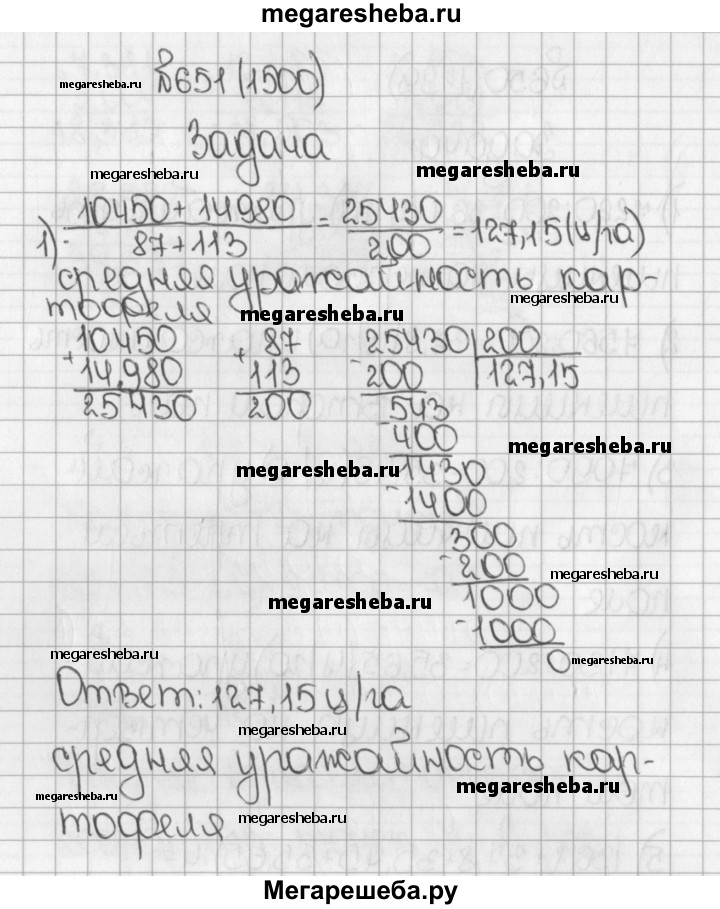 1500. С поля площадью 87 га сняли урожай 10450 ц картофеля, а с поля площадью 113 га собрали 14 980 ц картофеля. Найдите среднюю урожайность картофеля на этих полях.