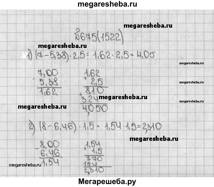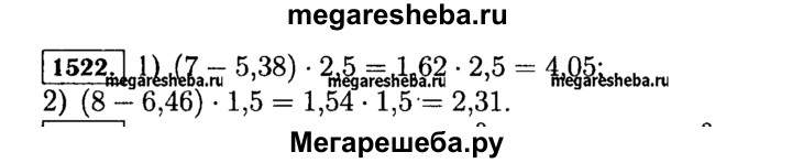 1522. Вычислите: 1) (7 - 5,38) * 2,5; 2) (8 - 6,46) * 1,5.