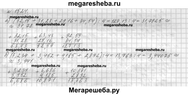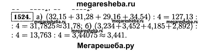 1524. Найдите среднее арифметическое чисел: а) 32,15; 31,28; 29,16; 34,54 и округлите ответ до сотых; б) 3,234; 3,452; 4,185; 2,892 и округлите ответ до тысячных.