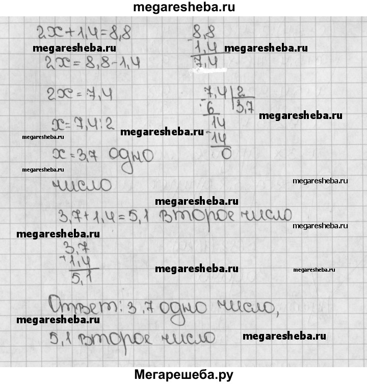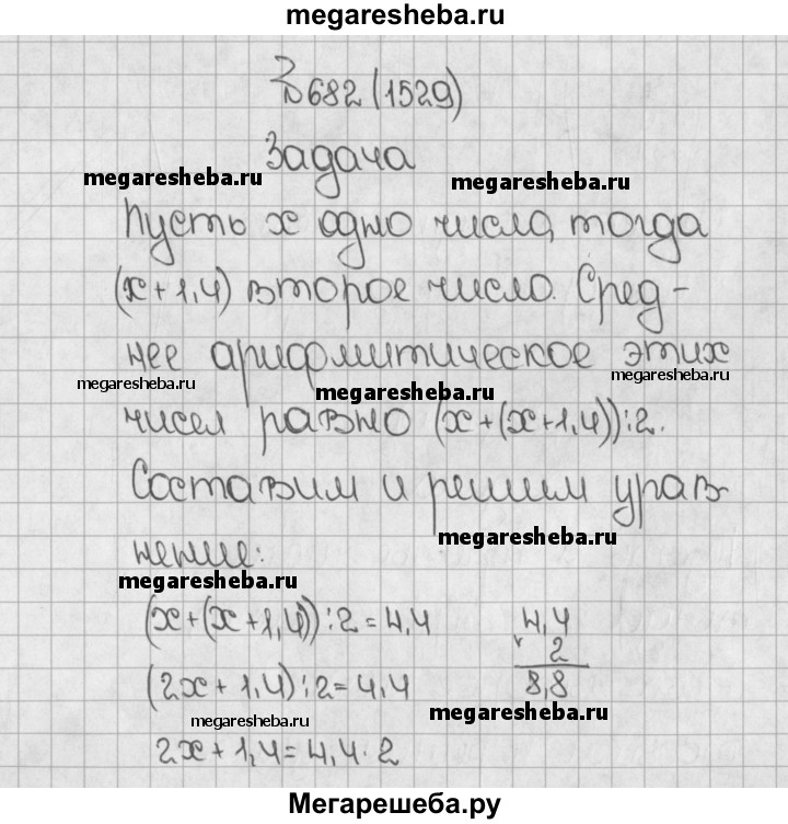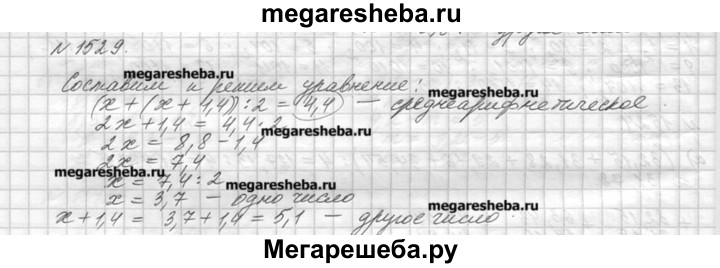 1529. Среднее арифметическое двух чисел 4,4. Найдите эти числа, если одно из них на 1,4 больше другого.