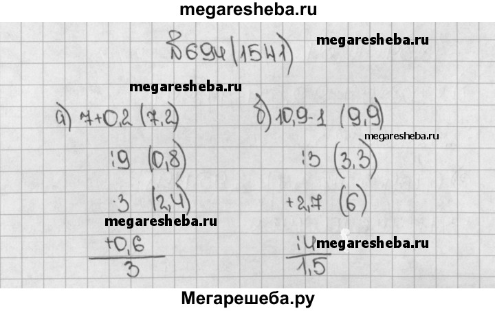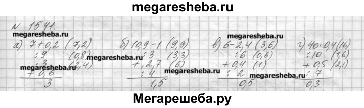 1541. Вычислите устно: а) 7 + 0,2: 9* 3+ 0,6/? б) 10,9-1: 3+2,7: 4 /? в) 6-2,4: 6+ 0,4: 2 /? г) 40 * 0,4: 10+ 0,5:7/?