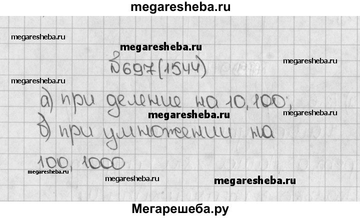 1544. Каким одним действием можно: а)уменьшить число в 10 раз; в 100 раз? б)увеличить число в 100 раз; в 1000 раз? Приведите примеры.