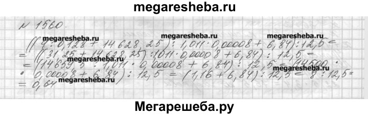 1560. Выполните действия и проверьте ответ с помощью микрокалькулятора: ((4 : 0,128 + 14 628,25) : 1,011 * 0,00008 + 6,84) : 12,5.