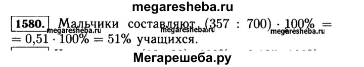 1580. В школе 700 учащихся. Среди них 357 мальчиков. Сколько процентов учащихся этой школы составляют мальчики?