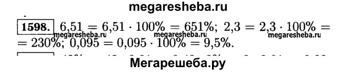 1598. Запишите в виде процентов десятичные дроби 6,51; 2,3; 0,095.