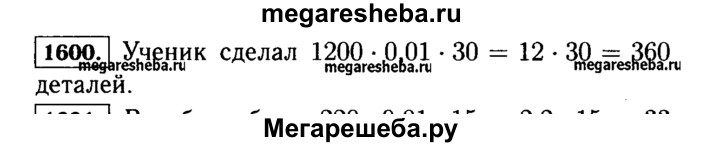 Гдз по математике за 5 класс Виленкин, Жохов, Чесноков ответ на номер № 1600