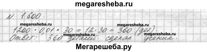 1600. Слесарь и его ученик изготовили 1200 деталей. Ученик сделал 30% всех деталей. Сколько деталей сделал ученик?