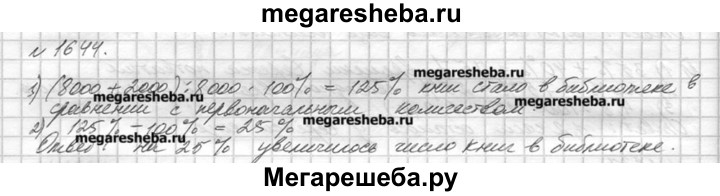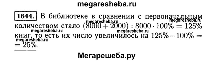 1644. В библиотеке было 8000 книг. Через год число их увеличилось на 2000 книг. На сколько процентов увеличилось число книг в библиотеке?
