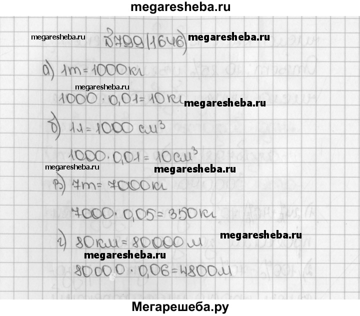 1646. Найдите, сколько составляют: а) 1% от тонны; в) 5% от 7 т; б) 1% от литра; г) 6% от 80 км.