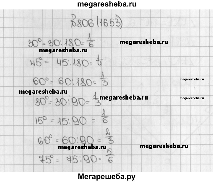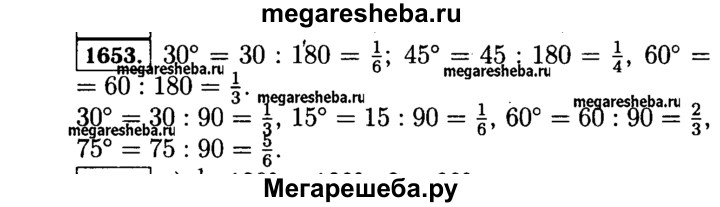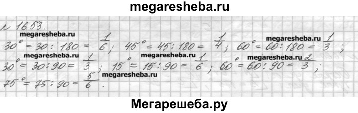 1653. Какую часть развёрнутого угла составляют углы в 30°; 45°; 60°? Какую долю прямого угла составляют углы в 30°; 15°; 60°; 75°?