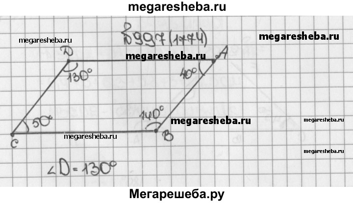 1774. Начертите четырёхугольник ABCD, у которого угол .А = 40°, ZB = 140°, угол C = 50°. Измерьте величину угла D.