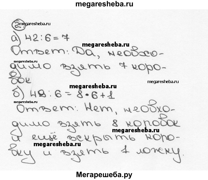 2. В каждой коробке лежат 6 чайных ложек. Можно ли, не вскрывая коробок, взять: а) 42 ложки; б) 49 ложек?