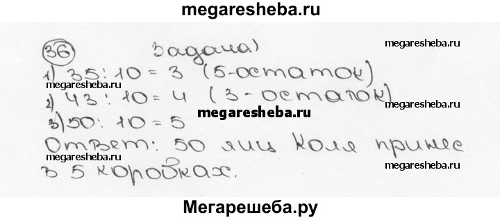 36. Коля принёс несколько коробок с яйцами, по 10 яиц в каждой коробке. Может ли быть, что он принёс 35 яиц? 43 яйца? 50 яиц?